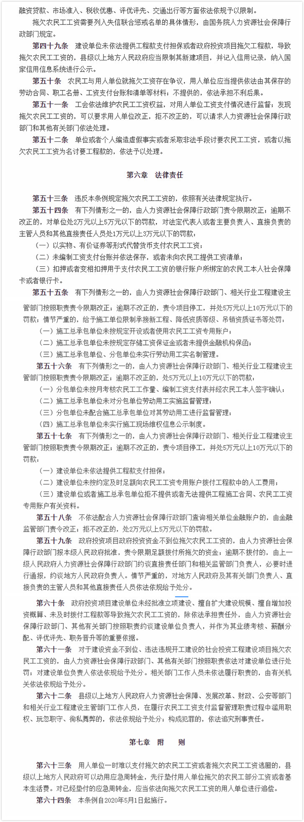 《條例》是我國(guó)迄今為止工資支付方面的最高層次立法,為保護(hù)廣大農(nóng)民工的合法權(quán)益提供了堅(jiān)實(shí)的法治保障,是推進(jìn)保障農(nóng)民工工資支付工作法治化、規(guī)范化的重要標(biāo)志。